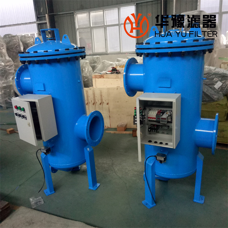 反沖洗除污器主要由***碳鋼筒體、濾筒、電動排污閥、水流導向閥、換向執行器、時鐘控制器等組成。當過濾器工作時,水流由入口進入過濾器,經過濾網過濾,水中的雜質被濾網截留,潔凈的水經出水口送出(見圖1)。當過濾器進出水壓差達到0.06-0.08MPa之間(或出水壓力過低,不能滿足后置系統正常運行)時,則需要對濾網進行反沖洗。關閉水流導向閥,水流經濾網內側進行反沖洗,濾網截留的雜質經排污口排出,起到反向自動沖洗濾網的作用產品特點